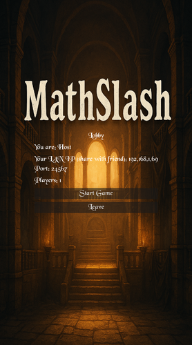 Sharpen your brain. Swing your sword. MathSlash is a fast-paced, 1v1 arcade battler where correct answers land real hits. Solve a quickfire math problem, slash your opponent, and watch their HP drop. Miss… and you might hurt yourself. 🗡️➗🧠